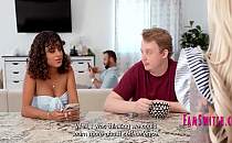 금발의 미녀 흑인과의 발코니 섹스