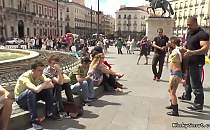 아담한 스페인 미녀 공공장소에서 창녀처럼 굴리기